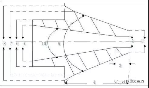 5)模芯外錐最小直徑d :d 實際上是決定模芯出線端口厚度的尺寸,端口厚度△=1/2(d -d )不能太薄,否則影響使用壽命;也不宜太厚,否則塑料熔體流道發(fā)生突變,并且形成渦流區(qū),引發(fā)擠出壓力的波動,而且易形成死角,影響塑料層質(zhì)量,一般模芯出線端口的壁厚控制再0.5~ 1mm為宜。